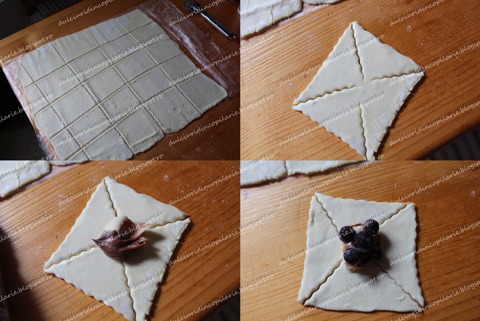 lingurita de fineti, cateva fructe si se unesc colturile de aluat. Se ung cu ou